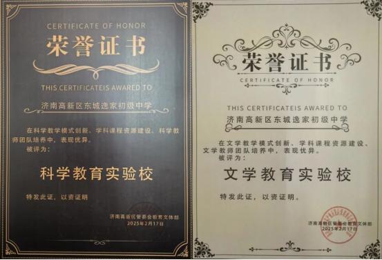 为全面发展济南高新教育,高新区依据“两翼多层”发展性教学评价体系,积极开展文学教育实验校和科学教育实验校的创建工作。东城逸家教育集团三所学校积极申报,经过专家组评审、集体审议,东城逸家中学获评“高新区文学教育实验校”“高新区科学教育实验校”,东城逸家小学获评“高新区文学教育实验校”“高新区科学教育实验校”,奥龙小学获评“高新区文学教育实验校”。